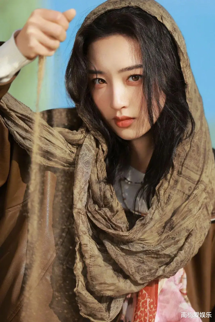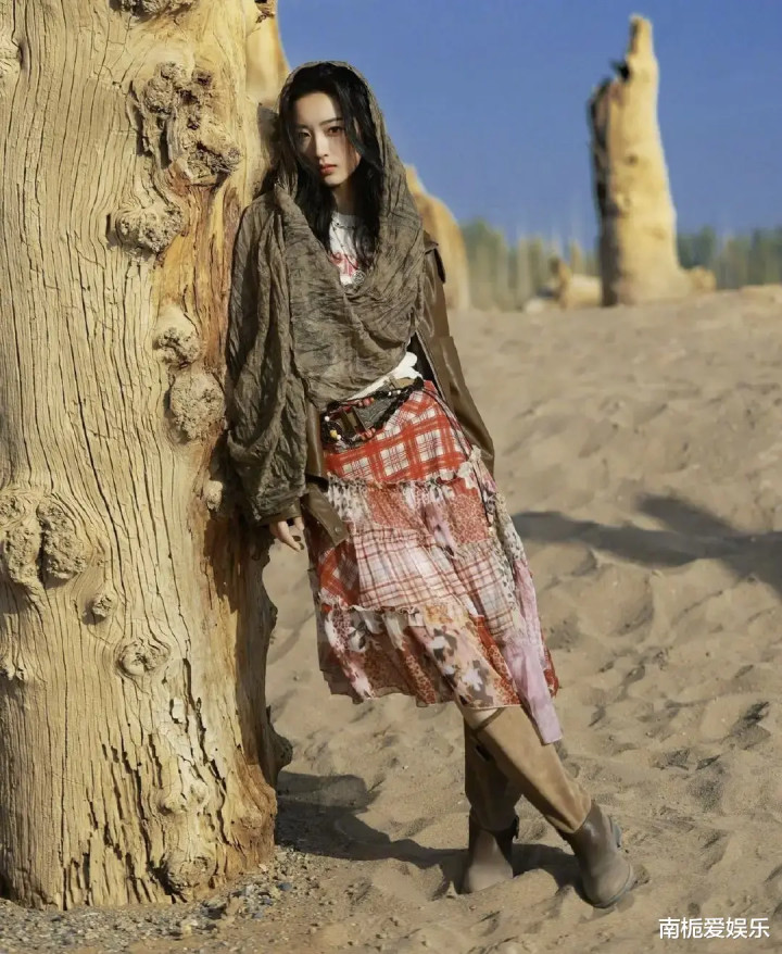这组写照的动东谈主之处,不仅在于其高完成度的视觉呈现,更在于精确捕捉并放大了邓恩熙极端的个东谈主气质。她天生的淡颜系骨相赋予她一种寒冷疏离的氛围感,脸颊上未褪的婴儿肥又为举座形象注入了仙女独到的娇憨与温度,酿成“疏离却不忽视”的“故事脸”。她的观点千里静而坚定,莫得刻意的张扬或戏剧化的心绪,姿态清静不迫,仿佛在风沙中自成一派宁静世界。这种柔中带刚、外柔内韧的气质,将“沙漠玫瑰”的预见评释得提纲契领。