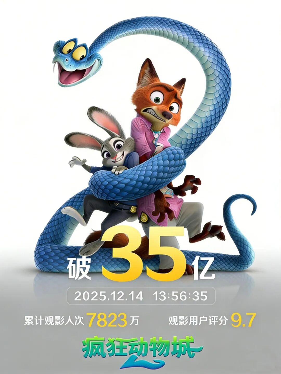 限度发稿,《猖獗动物城 2》票房已滋扰 35亿元,不仅超过前作 15.4 亿元的得益,更告成登顶中国影史入口动画票房冠军!